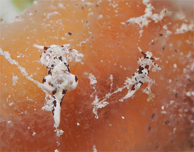 お!モウサンウミウシ(左の大きい方で5mmくらい)。