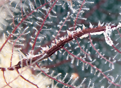 この時期いそうなウミヒドラを覗くとよく見つかるセスジスミゾメウミウシ