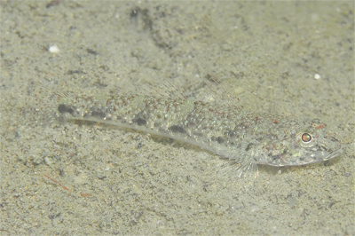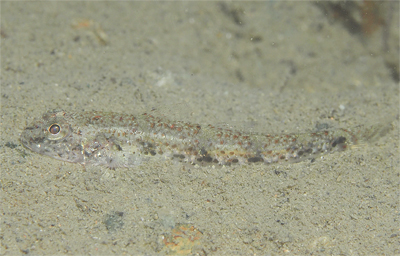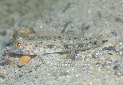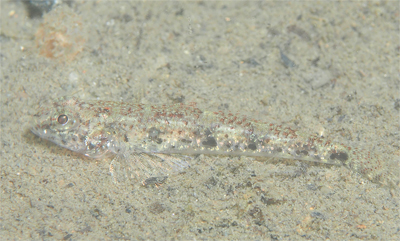 海藻に身を寄せるノドグロベラ幼魚(全長3㎝くらい)