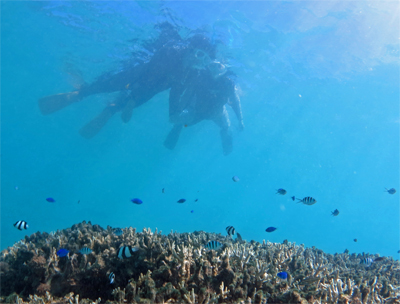 この根にはカマスの幼魚(全長10pくらい)小群も