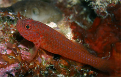 ミドリヤ (波:0.5m以下,うねりほとんどなし,透明度⇔:良い,水温:24℃,ダイブタイム61分,最深12m,ポイントリサーチ) ミドリヤにカメラを持って潜るのは3年ぶりくらいです♪この3年の間にミドリヤでもガイド中におもしろそうなハゼをいくつか見ています。 その1つ,2年くらい前にゲストYさんがここで撮影されたTrimma flammeum らしきハゼを探してみました。