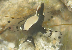 台風通過後ちょっと秋めいてきたのか,朝方はだいぶ涼しくなりました。しかし,日中はまだ猛暑で日差しもかなり強いし,まだまだ真夏(?)の奄美大島です。 さて,台風13号通過後&週末からのガイドに向けてさーっとリサーチ。 ハゴロモポイント (波ほとんどなし,うねり皆無,透明度⇔:こことしてはまずまず〜良い,水温:29℃,最深1.3m,ダイブタイム40分くらい,ポイントリサーチ) アシケブビーチ (波0.5m以下,うねりごくわずか,透明度⇔:良い,水温:インリーフ30℃,リーク内から外28〜29℃,最深16m,ダイブタイム2時間20分くらい,ポイントリサーチ) 倉崎ビーチ (波0.5m以下,うねりなし,透明度⇔:良い,水温:浅場30℃,-10m以深29℃,最深18m,ダイブタイム2時間くらい,ポイントリサーチ) 13号の影響はほとんどなく(あるいは回復していて),どこも荒れた様子もなくハゼや生物はいつも通りでした。よしよし! ハゴロモポイントよりハゴロモハゼとホホグロスジハゼ。