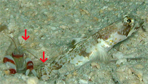 2月13日のログに載せた「マイ通称ハクセンフタイロサンゴハゼのいるサンゴ」も,ねばえばさんのご質問に回答させていただいたように,オニヒトデに喰われて白化したものと思われます。ちなみにオニヒトデにサンゴの一部(4分の1以上くらいかな?)でも喰われてしまうと,白化が進行し,そのサンゴは死んでしまうことが多いようです。まったく忌々しいオニヒトデです。 というわけで,広大な倉崎ですが,できるだけ1ヶ月に1度は全エリアを見るようにしています。 今日も,倉崎北側から湾中央方向に広がる大きな根をひと回りして,オニパト(オニヒトデ駆除パトロール)してきましたが,1匹も見つからず!ほっ&よっしっや! で,帰りは気をよくしてメインで潜る東側の砂地を軽くリサーチ。ログでおなじみ「新参ヒメオニハゼ」くんは今日も健在でした。
