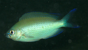 倉崎ビーチ (波:0.5m以下,うねりほとんど浅場ややあり,透明度⇔:まずまず,水温:-20mくらいまで21℃,それ以深20℃,最深30m,ダイブタイム75分くらい,ポイントリサーチ) ハナダイダマシ(かな?)と思っていたスズメダイ,オキスズメダイ(サカナトピックス)のようですね!教えていただいたM本さん,ありがとうございました。 今日再度行き,じっくりオキスズメダイを見てきました。実はオキスズメダイのところは「底の底」の比較的近くで,いままでは「底の底」の帰りにちょこっと寄っていたんですが,今日はメインでじっくり見る撮るしてきました!!
