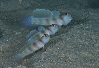産卵のためペアで浮上するニシキテグリ(↓:♀,↓:♂)