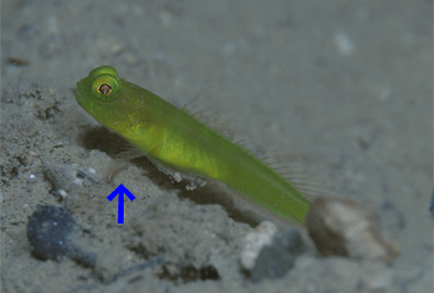 胸鰭を振るイトヒキハゼsp.黄化クン