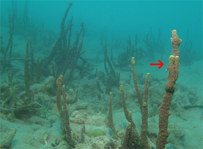やや湾奥 (波0.5m〜それ以下,うねり浅場かなり大,深場もあり,水温:23〜25℃) 記録的豪雨+追い打ちの14号後のマイホームグランド・やや湾奥ポイントをチェックしてきました。 26〜30日のログに書いたように,もっと湾奥ポイントの浅場は赤土が分厚く堆積し被害甚大なので,ここの浅場のウォッチングスポットには泥の堆積がないかを主に見てみました・・・ で,結論から言うと,このポイントは今のところ泥の堆積もなくほぼノーダメージ!♪ ほっと〜〜良かった〜うれし涙 チェックしたところをいくつかメモ撮りしたので以下アップします。ちなみに台風通過直後で海況がまだかなり悪く(透明度はダイバーひとり分あるかないか汗)見苦しいワイド系画像になっていますが,まあとりえず無事な様子をアップということで,あしからず・・・ まず「サボテングサの藻場」周辺・・・