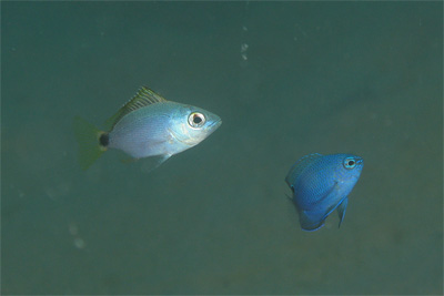 ヒメフエダイ幼魚とナガサキスズメダイ幼魚