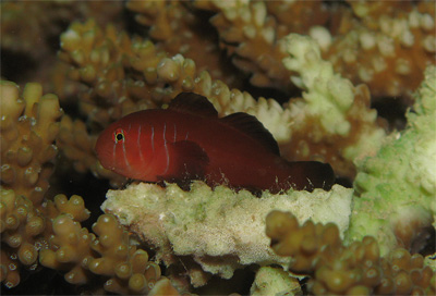 ネオンテンジクダイ幼魚とアカメハゼ幼魚の