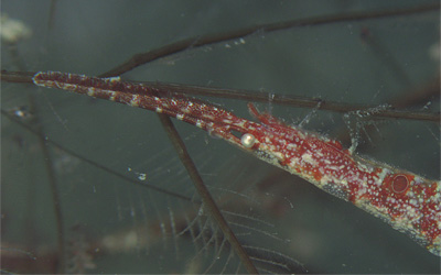 シロガヤ(またはその近似種)につくトガリモエビ属の1種の♀が