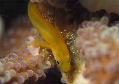 今日孵化(ハッチ)しそうだったキイロサンゴハゼの卵,やはりハッチしました♪