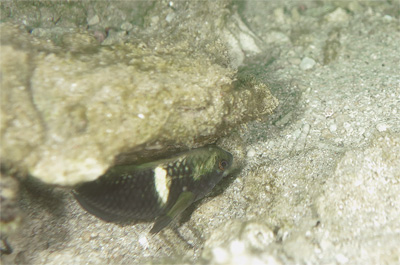 サンゴ岩の下の巣をメンテする♂(上画像と同一個体)