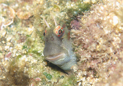 スジクモハゼ♂は背鰭が赤く,体や顔は黒く発色