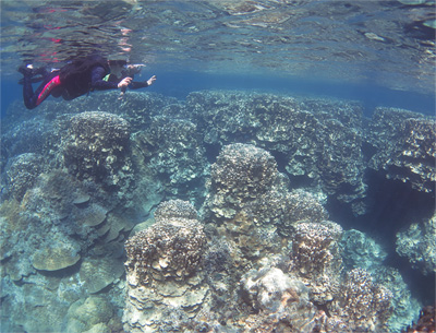 朝曇りのち快晴,北風弱い,最高気温27℃(最低気温19℃),水温:リーフごく浅場朝25℃,午後26℃
