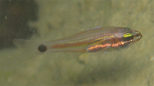 1箇所見かると,すぐに3,4匹の小群が数箇所見つかり,また下画像のように口内保育している雄もいるので,いままで私の探し方が悪かっただけで,ナガレボシは前々から北部にも居着いていたようですね。